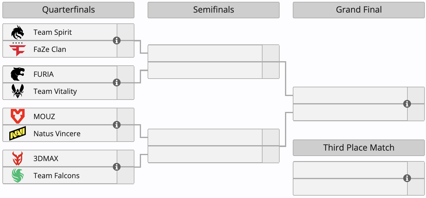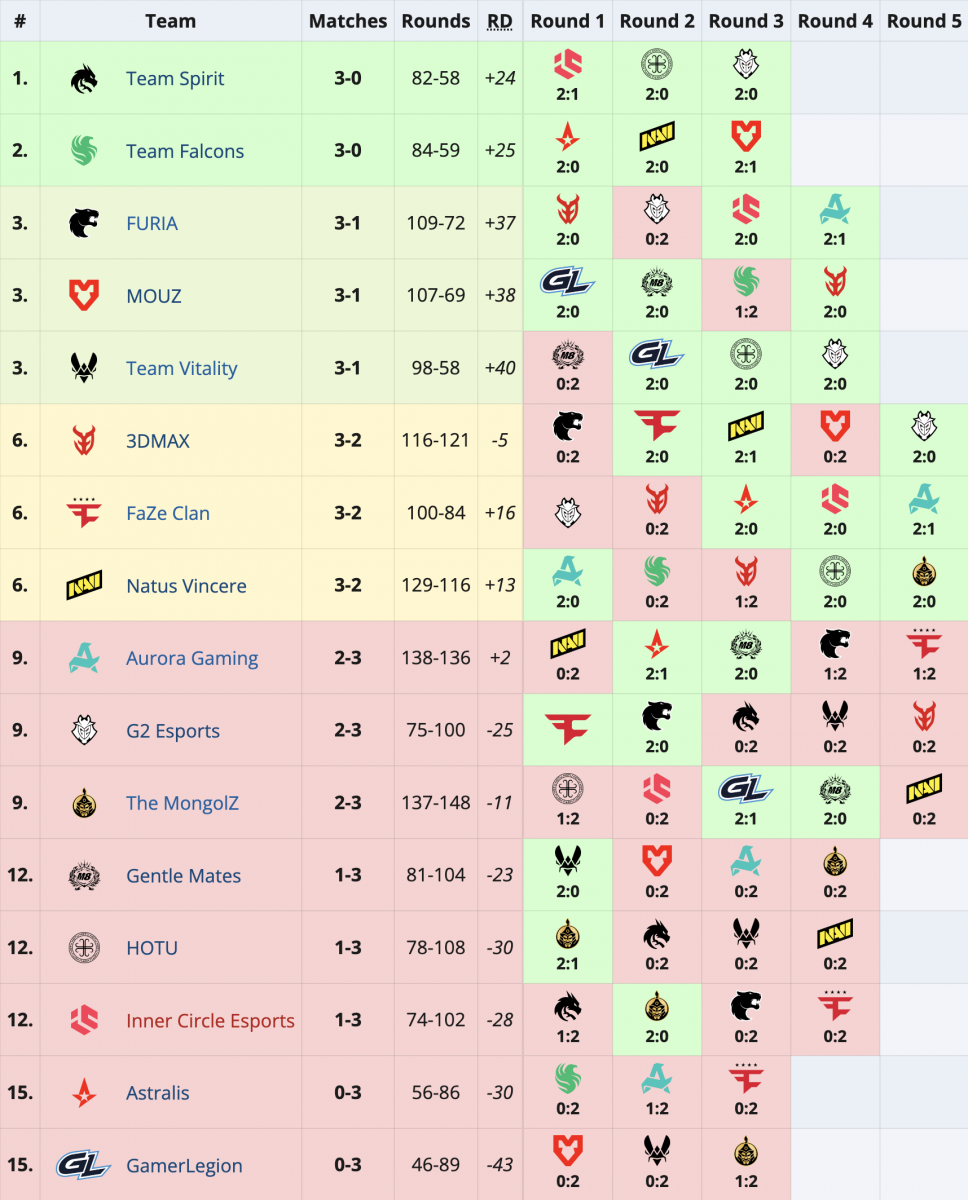 В матчах за выход в следующий этап ивента NAVI одержала победу над The MongolZ, 3DMAX взяла верх над G2, а FaZe оказалась сильнее Aurora. Проигравшие коллективы завершили выступление на турнире.