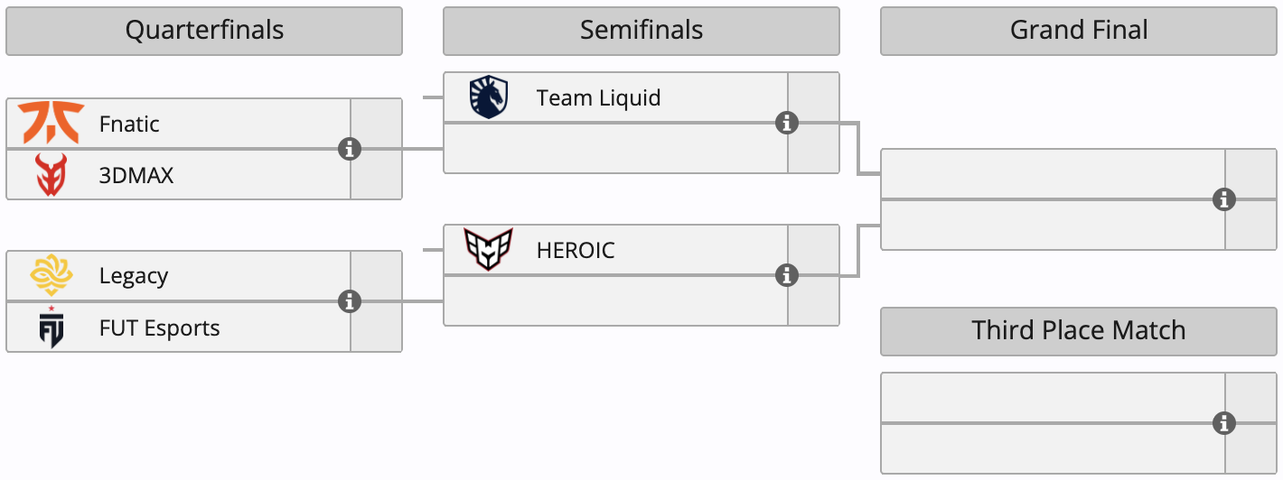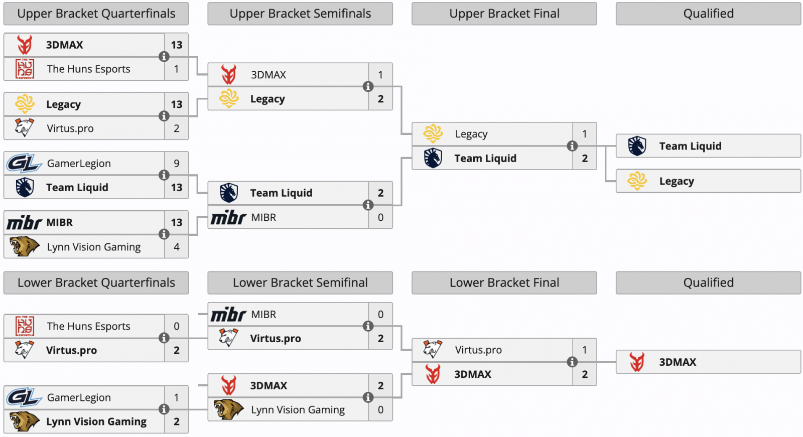 Кроме того, Liquid сегодня одержала победу над Legacy, а HEROIC взяла верх над fnatic. Победители прошли сразу в полуфинал турнира, а проигравшие начнут свое выступление в плей-офф с первого раунда сетки.