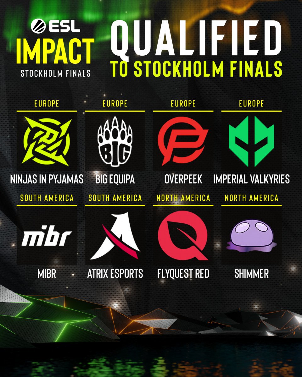 Представлять европейский регион на турнире будут Imperial Valkyries, NIP Impact, BIG EQUIPA и Overpeek. От Северной Америки на ивент приедут FlyQuest RED и Shimmer, а от Южной – Atrix и MIBR fe.