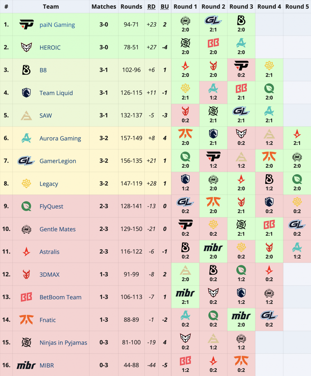 В матчах за выход в финальный этап ивента GamerLegion одержала победу над Gentle Mates, Legacy взяла верх над FlyQuest, а Aurora оказалась сильнее Astralis.
