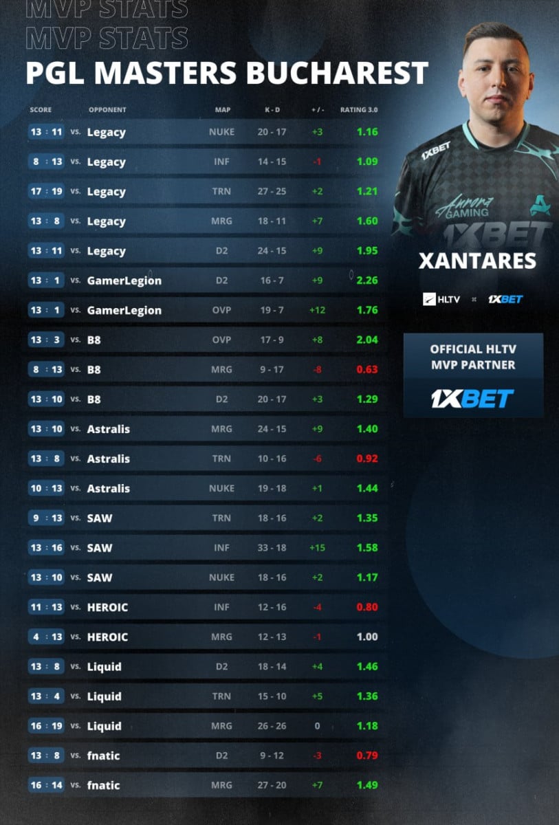 XANTARES признан лучшим игроком PGL Masters Bucharest 2025