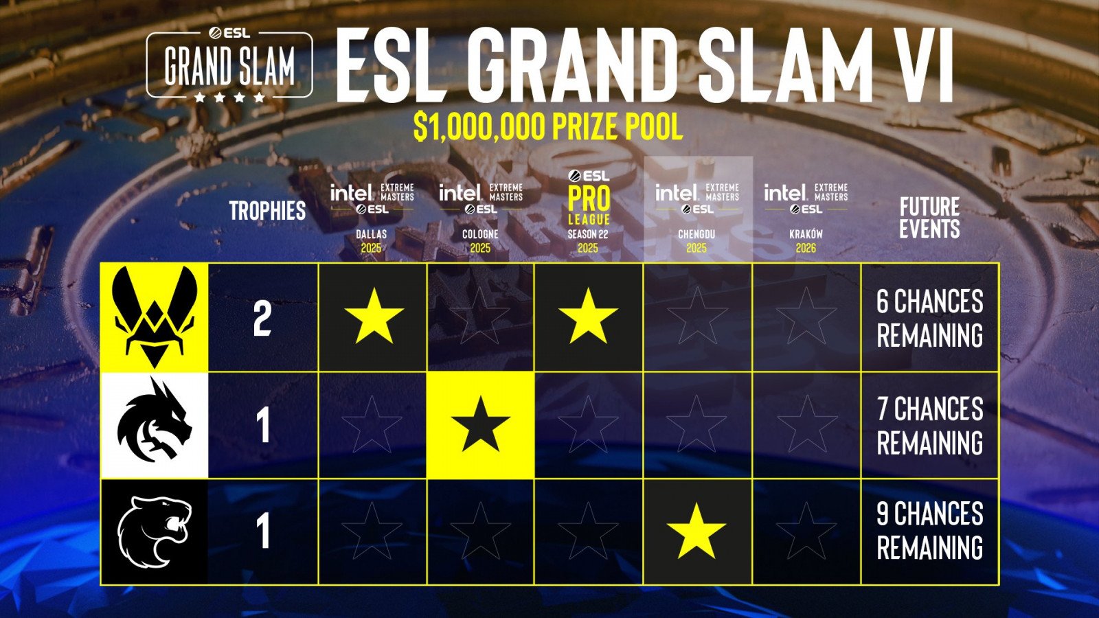 Благодаря победе на чемпионате IEM Chengdu 2025 по Counter-Strike 2 команда FURIA включилась в борьбу за титул шестого сезона ESL Grand Slam – его обладатель получит один миллион долларов США.