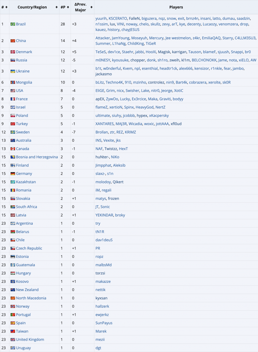 По этому показателю Россия делит третью строчку с Данией (+5 игроков по сравнению с прошлым мейджором) и Украиной (+3), уступая Бразилии и Китаю с 28 и 14 игроками соответственно.