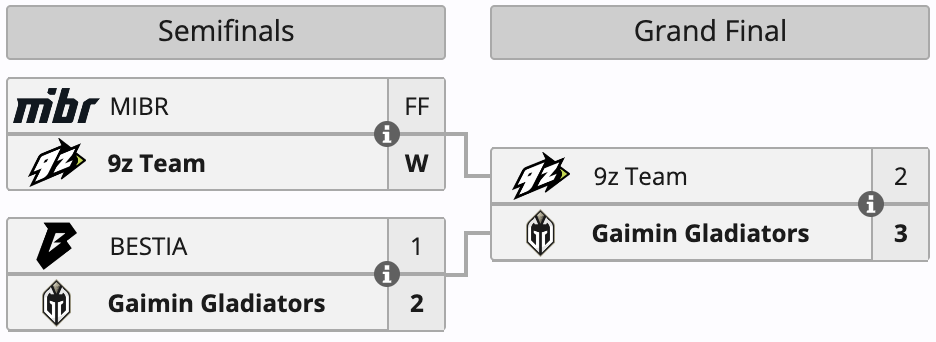 В Южной Америке региональный финал ESL Challenger League Season 50 между 9z и Gaimin Gladiators завершился в пользу последних со счетом 3:2.