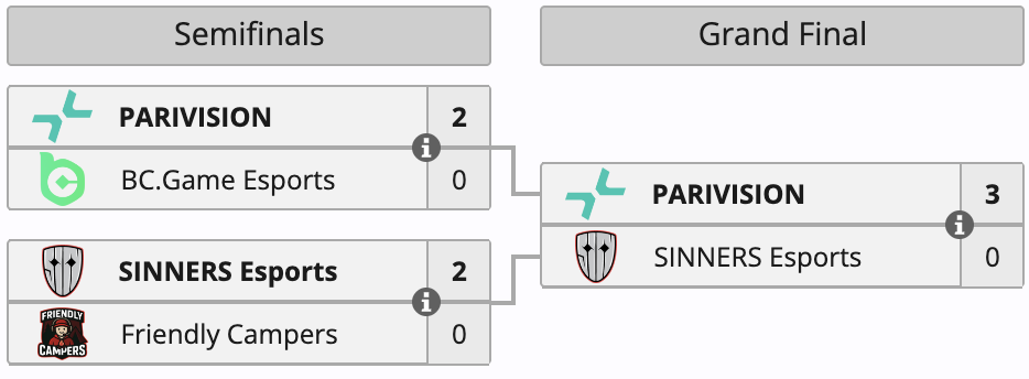 Определились победители 50-го сезона ESL Challenger League по Counter-Strike 2. В Европе первое место в рамках регионального финала занял коллектив PARIVISION, которому в решающем матче удалось со счетом 3:0 разгромить состав SINNERS.