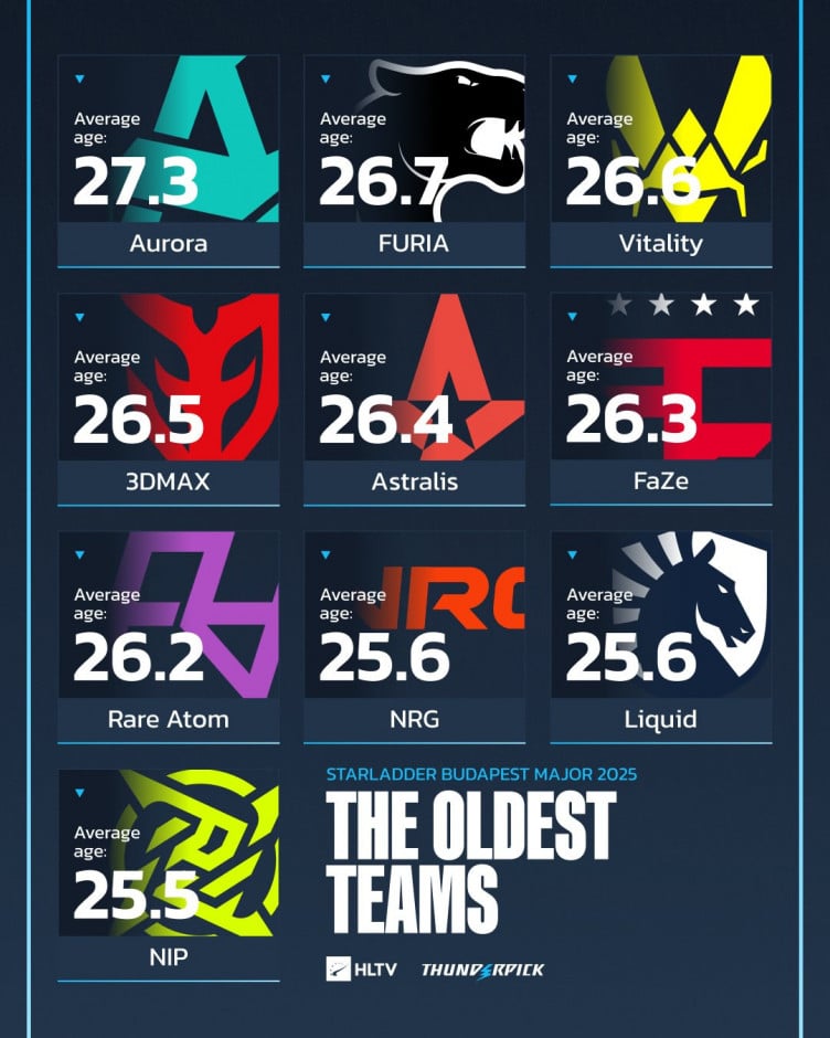 Названы самые возрастные и молодые команды на StarLadder Budapest Major 2025