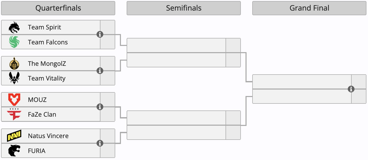 Так, Team Spirit в первом раунде плей-офф встретится с Falcons; Vitality поборется с The MongolZ; первым соперником MOUZ станет FaZe; NAVI сыграет против FURIA. Финал будет сыгран до трех побед, остальные матчи – до двух. С результатами третьей стадии вы можете ознакомиться по ссылке.