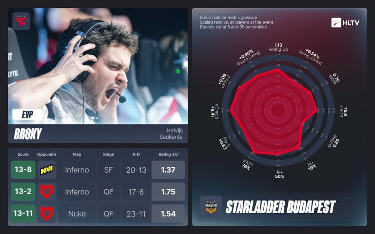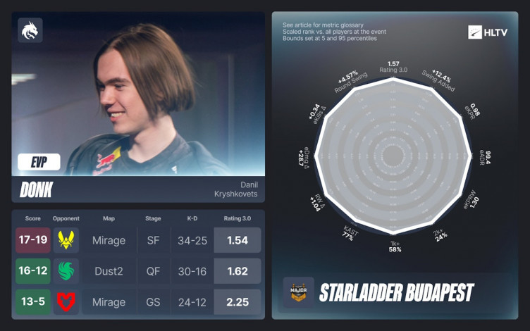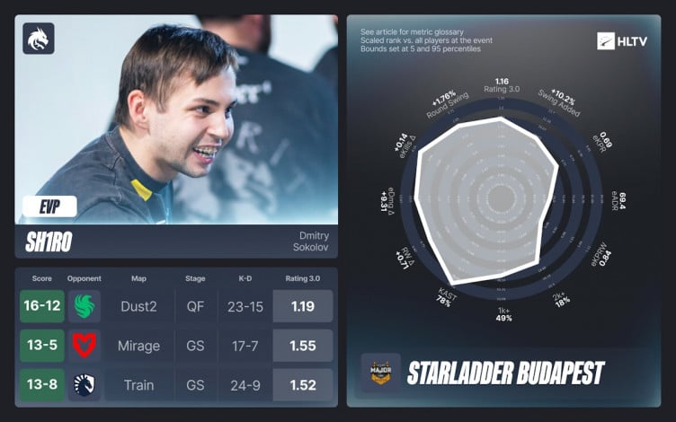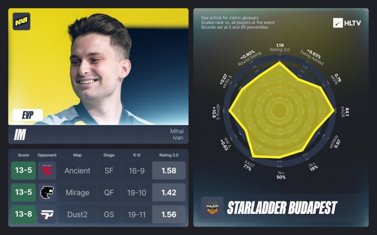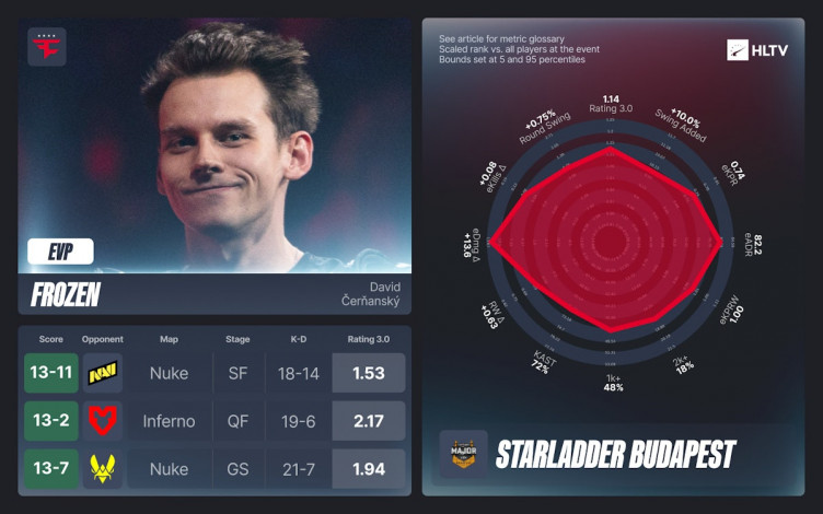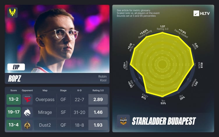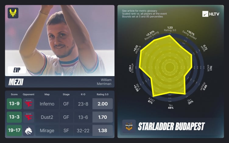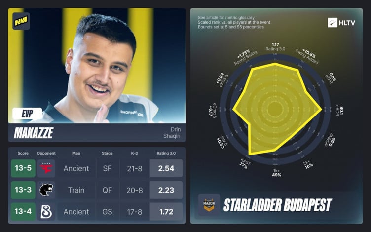 Портал HLTV.org опубликовал список киберспортсменов, удостоенных звания исключительно ценных игроков (EVP) по итогам минувшего мейджора StarLadder Budapest Major 2025 в Венгрии.