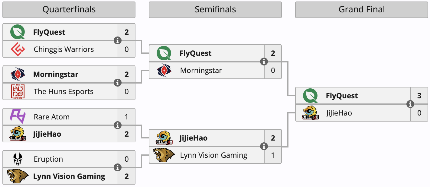Соревнование проходило с 23 по 25 января в Пекине, Китай, при участии восьми команд. В финале турнира FlyQuest со счетом 3:0 разгромила состав JiJieHao (16:13 на Ancient, 13:4 на Anubis, 13:7 на Dust2), а перед этим расправилась с Morningstar и Chinggis Warriors.
