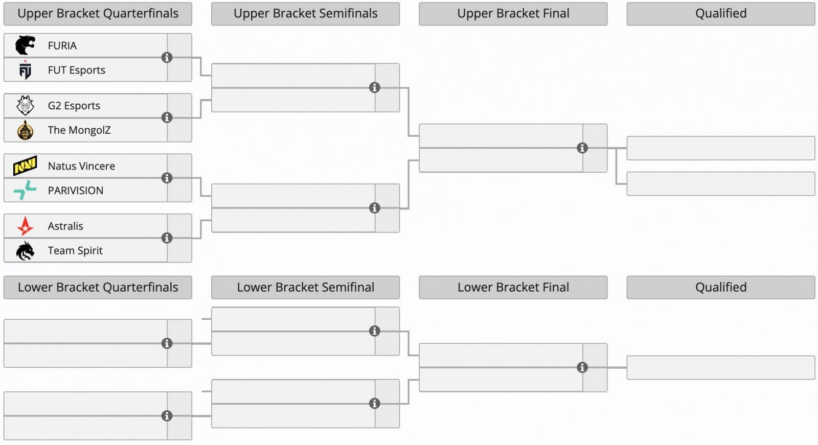 Победители прошли в групповой этап. Проигравшие команды покинули соревнование. Коллективы, не выигравшие ни одного матча в Play-In (B8, Legacy, Passion UA и HEROIC), разделили 21-24 место и получили по $2500; команды, дошедшие до второго раунда нижней сетки (GamerLegion, NIP, Liquid и paiN), заняли 17-20 место и выиграли по $4500.