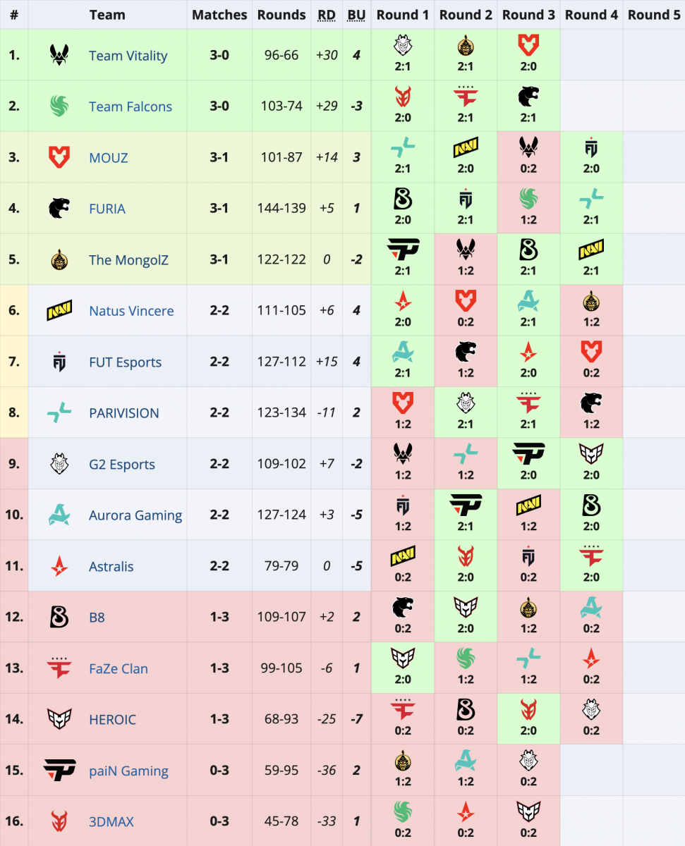 В матчах за выход в плей-офф MOUZ одержала победу над FUT, The MongolZ взяла верх над NAVI, а FURIA оказалась сильнее PARIVISION. Победители закончили групповую стадию со счетом 3-1.