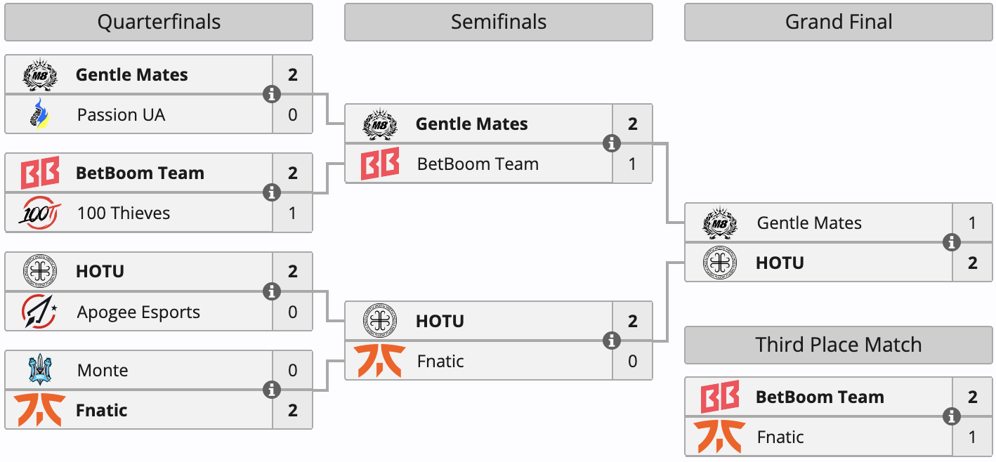 За победу коллектив получил пять тысяч евро. Серебряному призеру досталась вдвое меньшая сумма. Еще €1500 заработала BetBoom Team, занявшая третье место. Общий призовой фонд ивента составил €10 тыс.