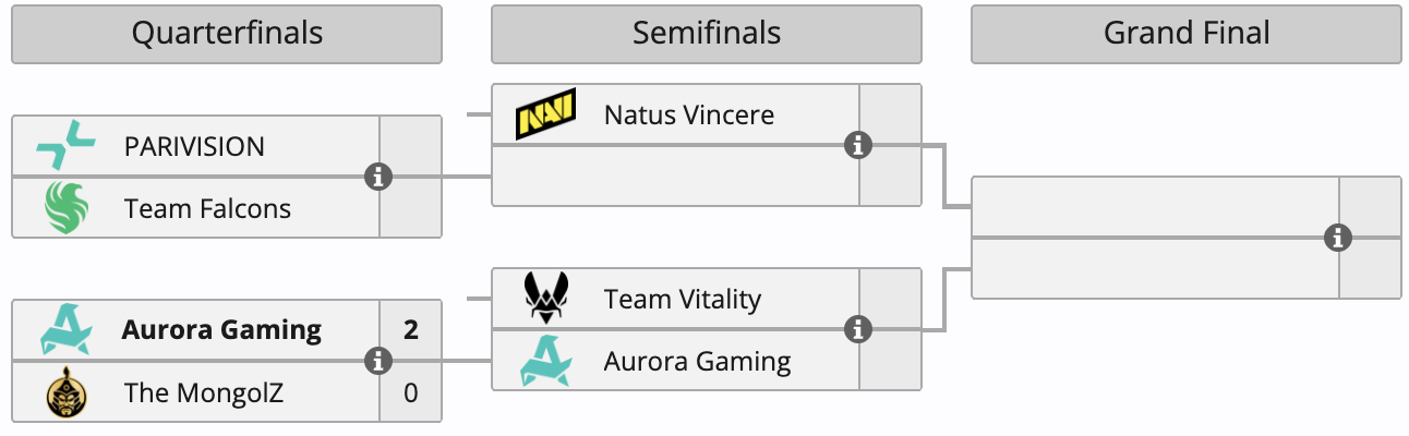 В первом раунде плей-офф The MongolZ со счетом 0:2 (6:13 на Inferno, 9:13 на Mirage) уступила составу Aurora и покинула соревнование.