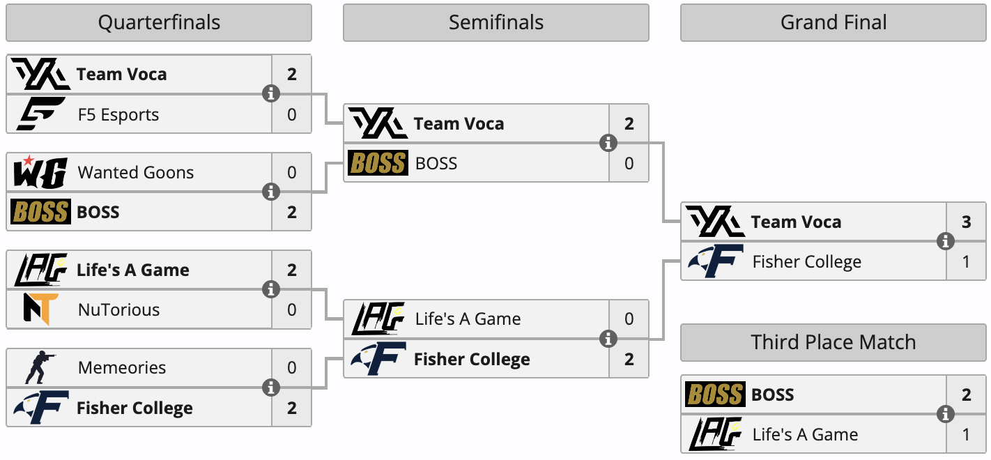 Коллектив Voca стал победителем небольшого LAN-чемпионата Fragadelphia York 2026 по Counter-Strike 2. Соревнование проходило с 26 по 29 марта в Сиракьюсе, США. В финале Voca со счетом 3:1 обыграла состав Fisher College (10:13 на Nuke, 13:7 на Mirage, 13:4 на Ancient, 13:8 на Overpass).