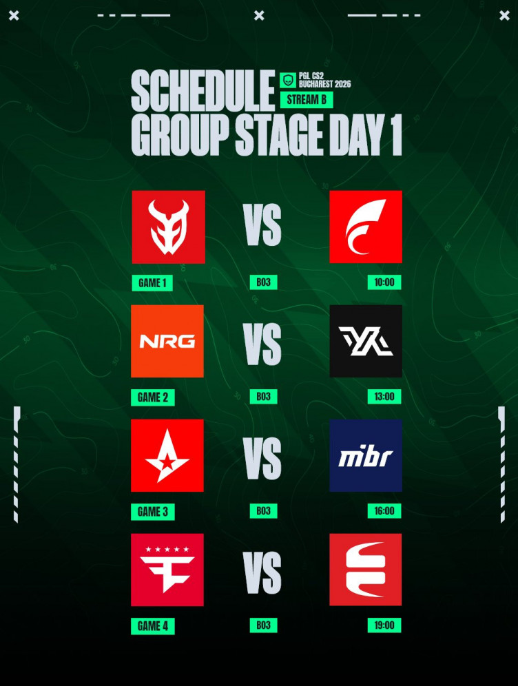 Организаторы грядущего чемпионата PGL Bucharest 2026 по Counter-Strike 2 опубликовали посев участников – стали известны пары соперников в первом раунде групповой стадии.