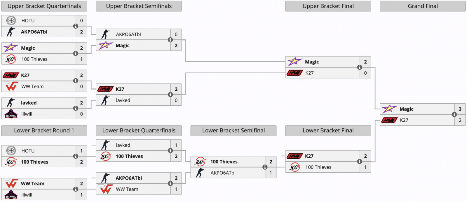 По результатам европейской квалификации на турнир прошел состав Magic, которому в финале отборочных удалось обыграть K27. Итоговая сетка квалификации выглядит следующим образом: